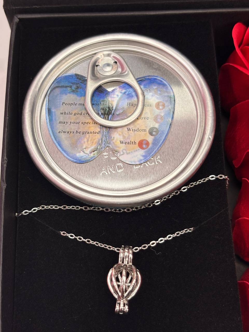 گردنبند مروارید عشق باکس کادویی گل رز