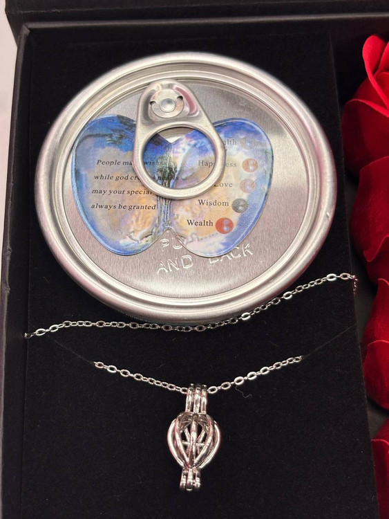 زنجیر استیل رنگ ثابت داخل کنسرو صدف طبیعی داخل ان مروارید پرورشی