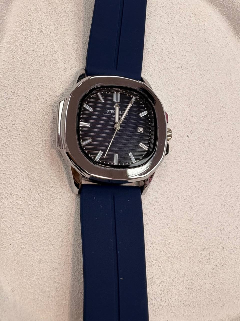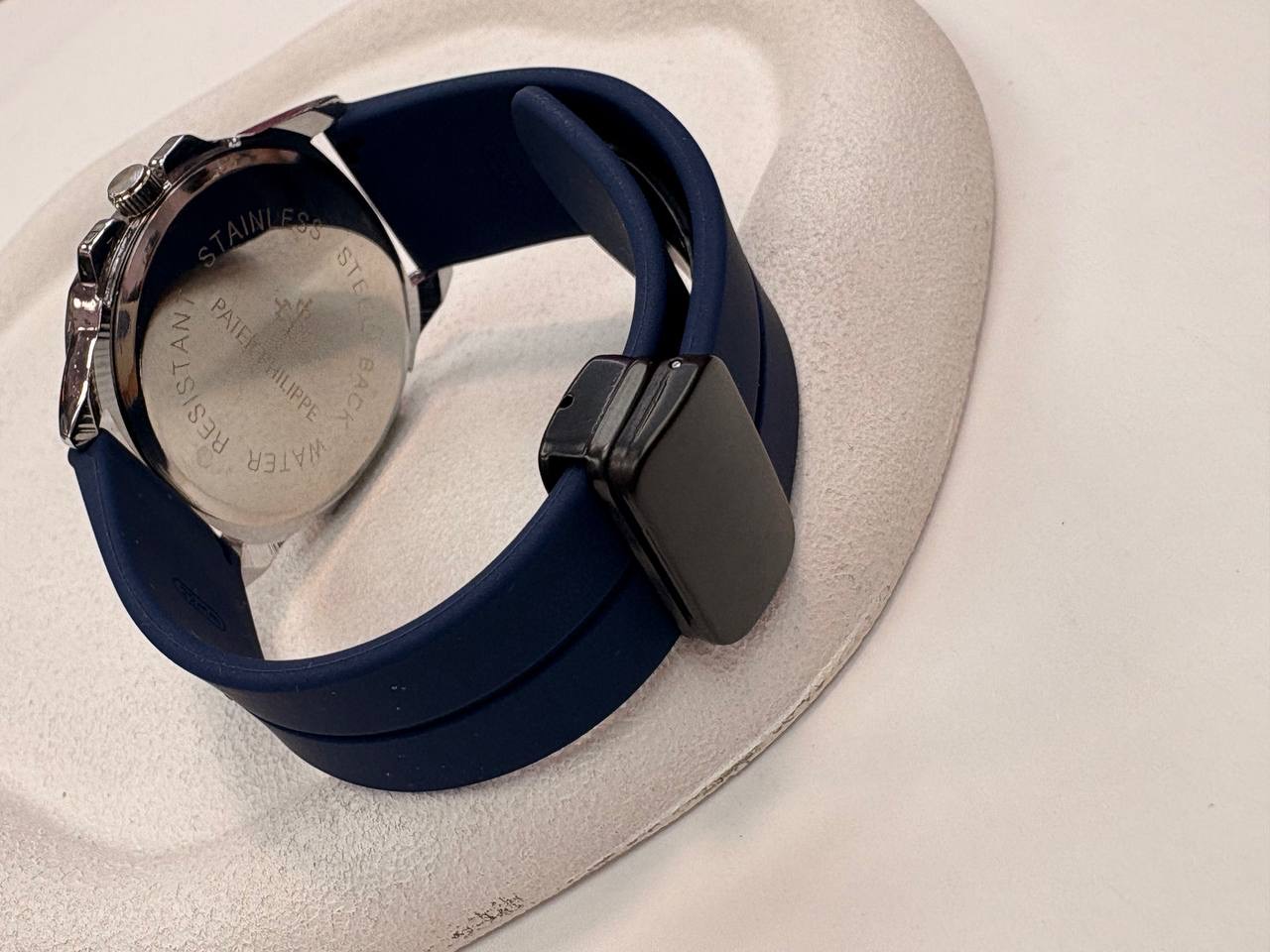 ساعت پوداگار سرمه ای درجه یک موتور باکیفیت کوارتز قفل مخفی بدنه استیل تقویم دار دو موتوره بند رابر باطری خور اسپرت