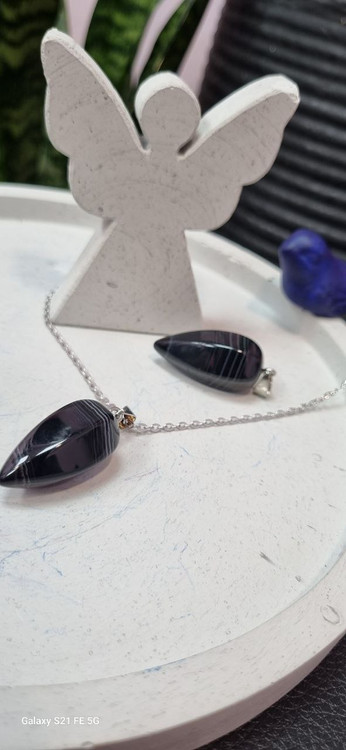 گردنبند استیل و سنگ منشور تورمالین سیاه