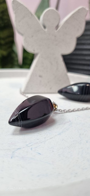 سنگ منشور تورمالین مشکی با زنجیر استیل نقره ای رنگ ثابت بدون ایجاد حساسیت و تغییر رنگ