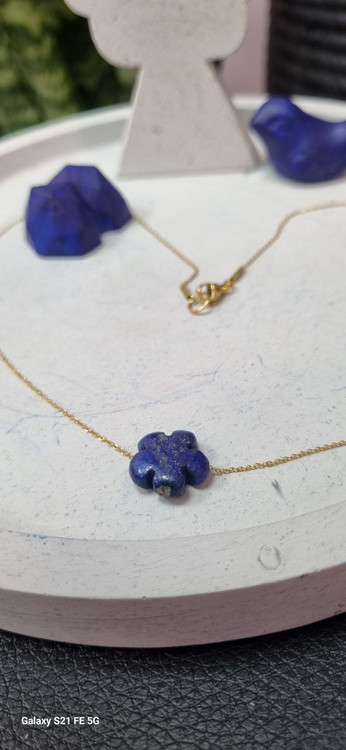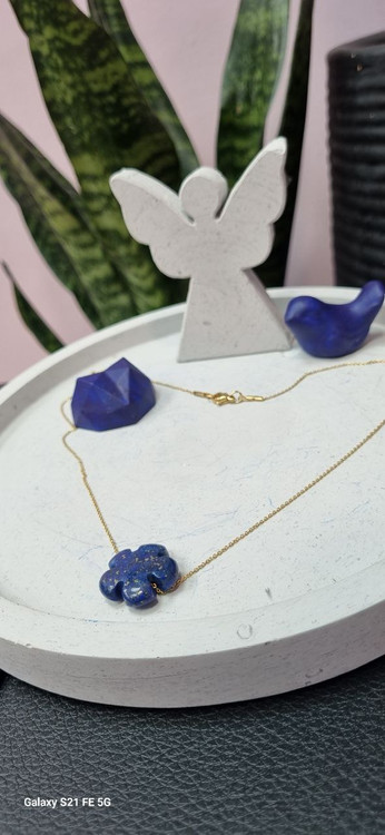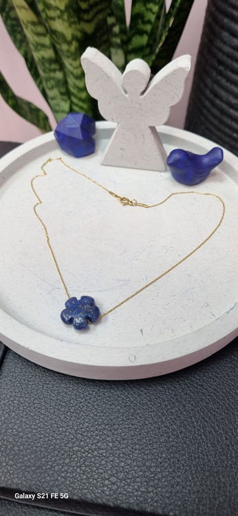 سنگ لاجورد با زنجیر استیل طلایی رنگ ثابت بدون ایجاد حساسیت و تغییر رنگ