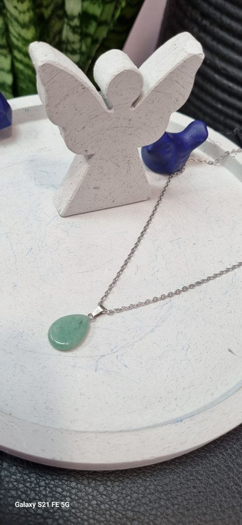گردنبند استیل و سنگ اشکی اونتورین سبز
