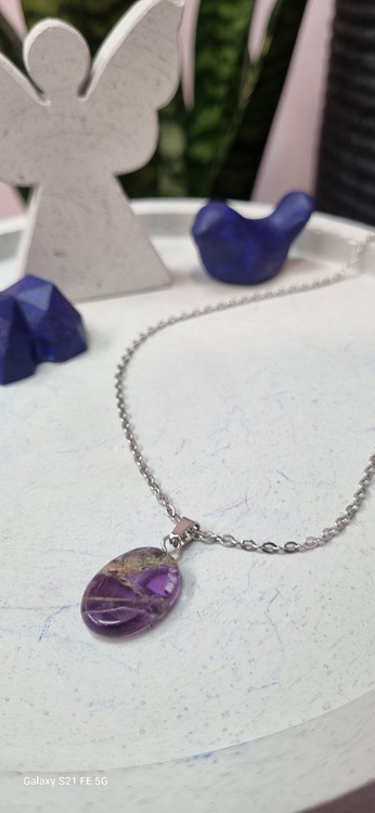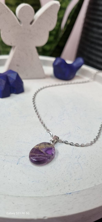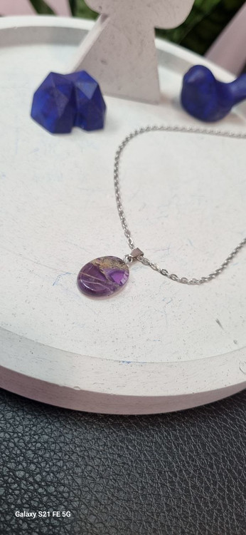 گردنبند استیل و سنگ بیضی آمیتیست