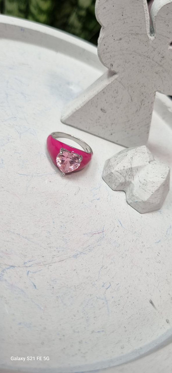 انگشتر استیل صورتی تک نگین قلب فانتزی رنگ ثابت و بدون ایجاد حساسیت