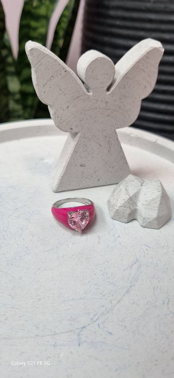 انگشتر استیل صورتی تک نگین قلب فانتزی