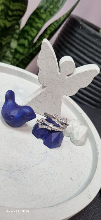 انگشتر استیل نقره ای فرد سایز فری با ابکاری نقره و نگین های مخراجکاری شده درجه یک رنگ ثابت و بدون ایجاد حساسیت