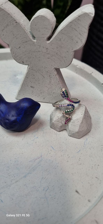 انگشتر استیل نقره ای ماری نگین دار با ابکاری نقره و نگین های مخراجکاری شده درجه یک رنگ ثابت و بدون ایجاد حساسیت