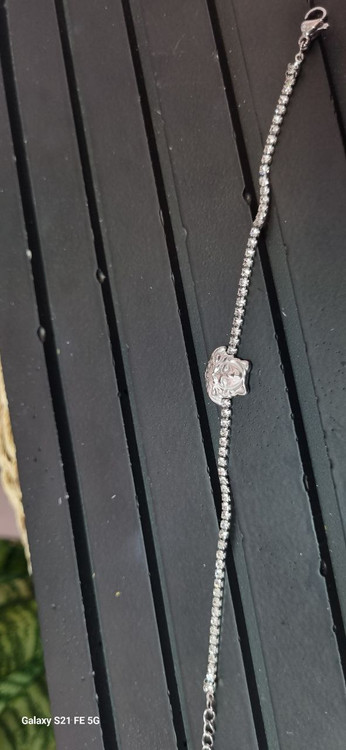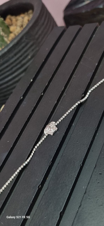 دستبند نگین دار با پلاک ورساچه نقره ای رنگ ثابت بدون ایجاد حساسیت و تغییر رنگ