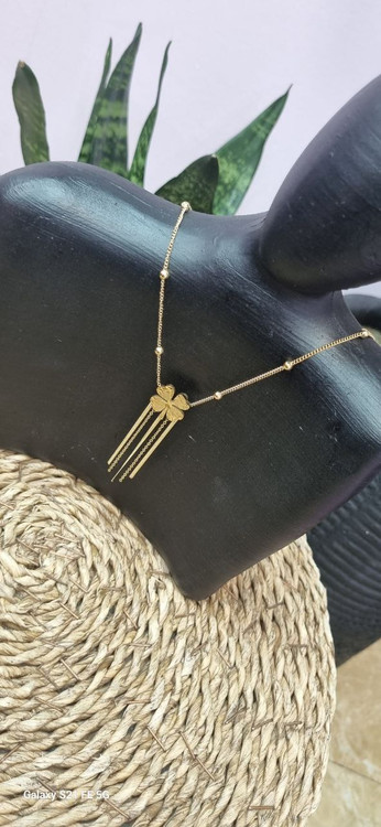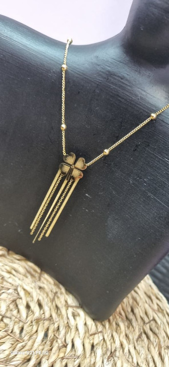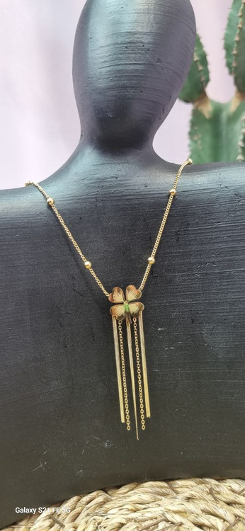 گردنبند استیل طلایی با پلاک شبدر رنگ ثابت بدون ایجاد حساسیت و تغییر رنگ