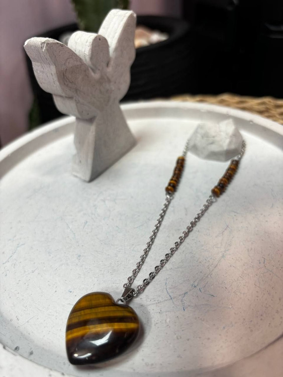 گردنبند سنگ چشم ببر با زنجیر استیل نقره ای رنگ ثابت بدون ایجاد حساسیت و تغییر رنگ