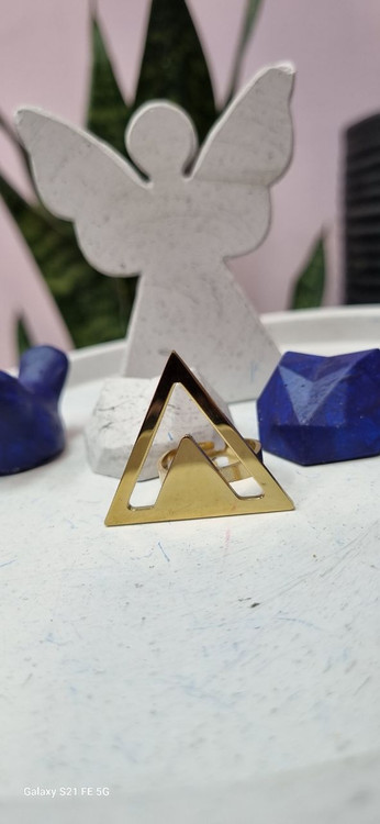 انگشتر استیل طلایی مثلثی درجه یک رنگ ثابت و بدون ایجاد حساسیت