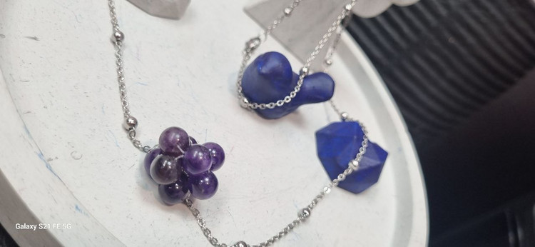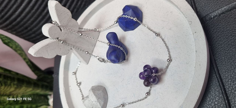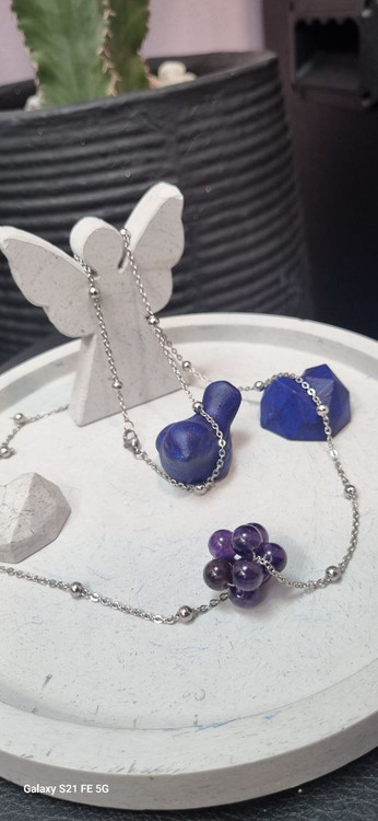 گردنبند گوی سنگ آمیتیس و زنجیر خلخال
