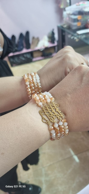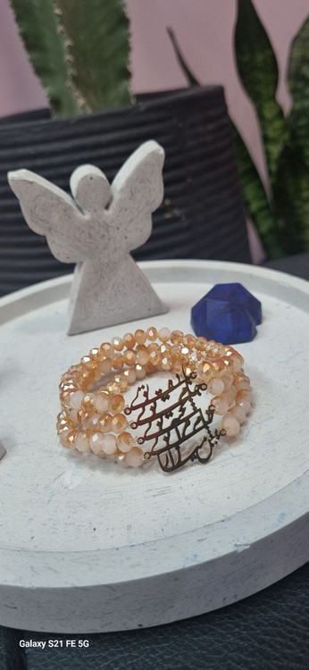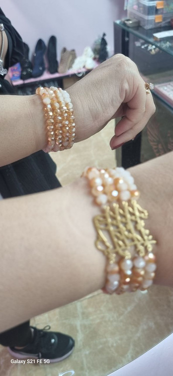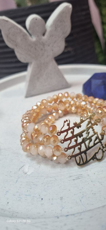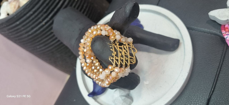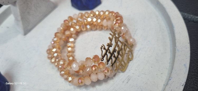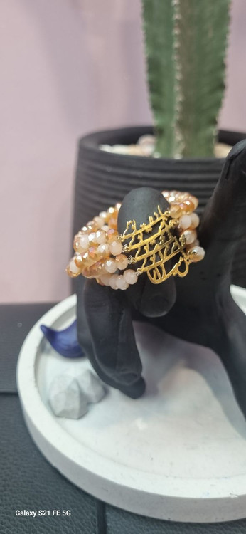 دستبند استیل طلایی شعر با مهره کریستال چند لاین