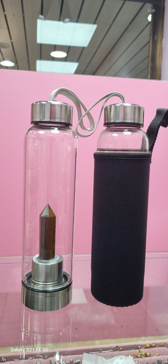 قمقمه سنگ طبیعی چشم ببر بدنه کریستال و استیل