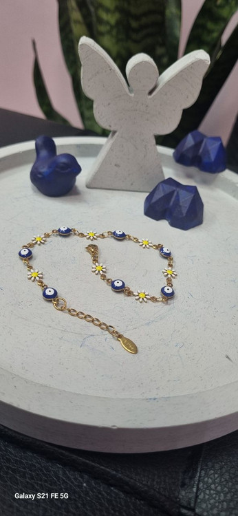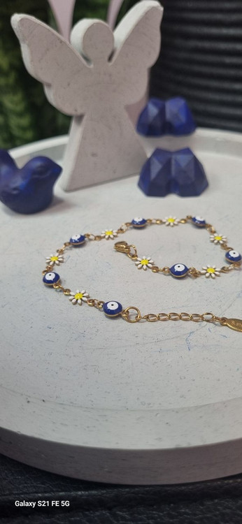 پابند طلایی استیل رنگ ثابت بابونه و چشم نظر