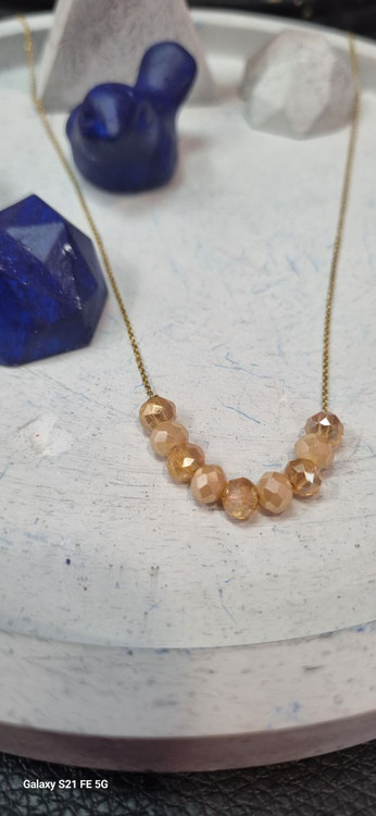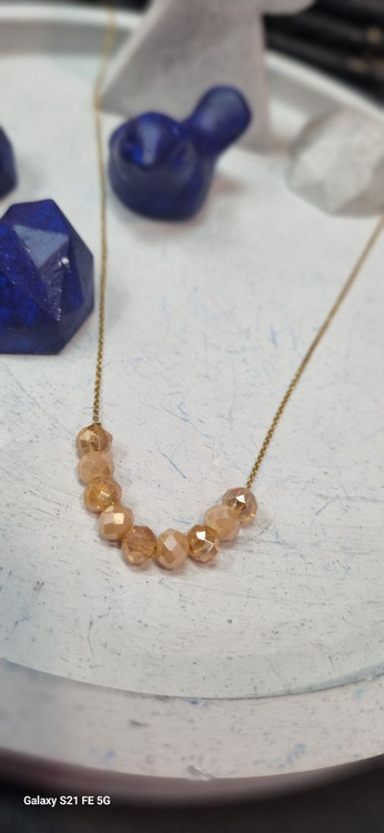 گردنبند استیل رنگ ثابت طلایی مهره سنگ کریستال