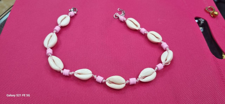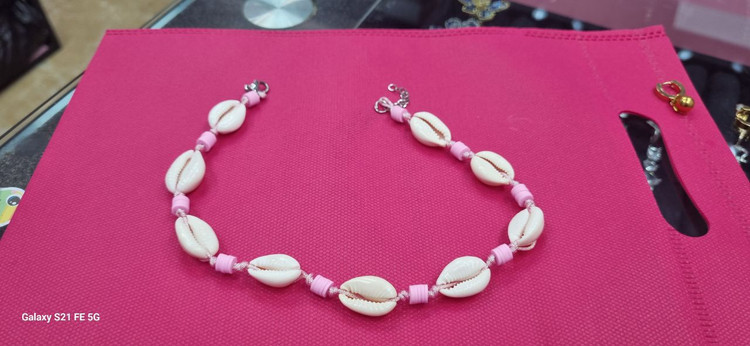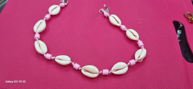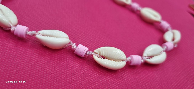 چوکر صدف طبیعی و فیمو بند لمه صورتی