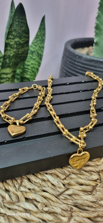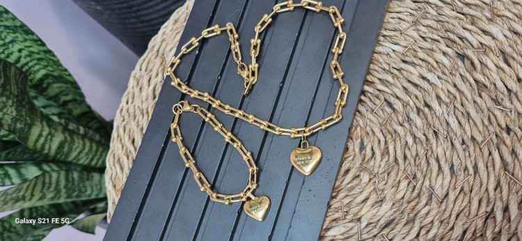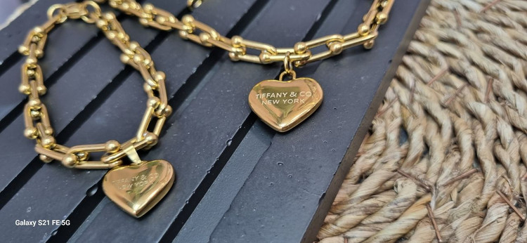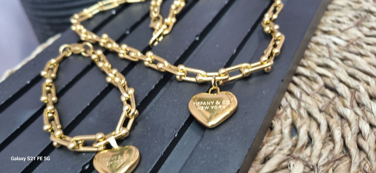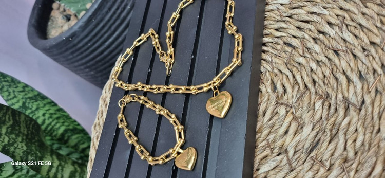 ست کامل استیل تیفانی با اویز قلب قفل ملوانی طلایی ترندترین