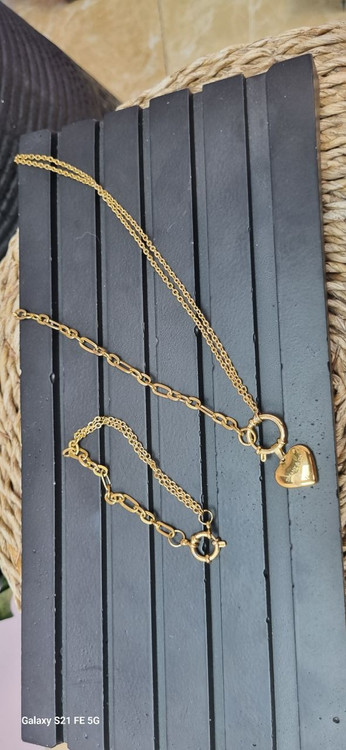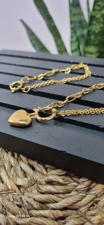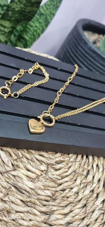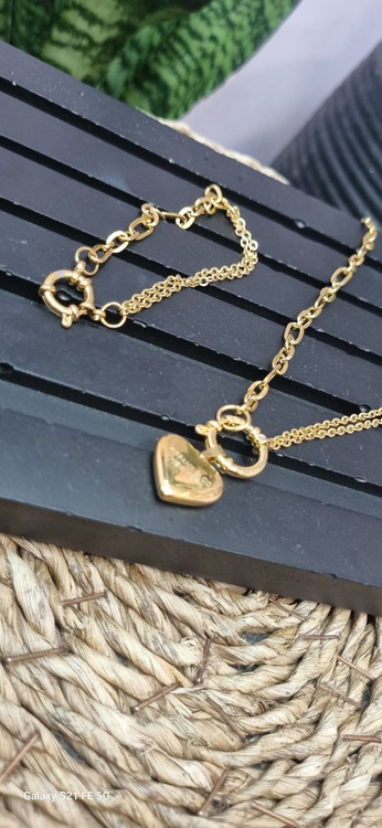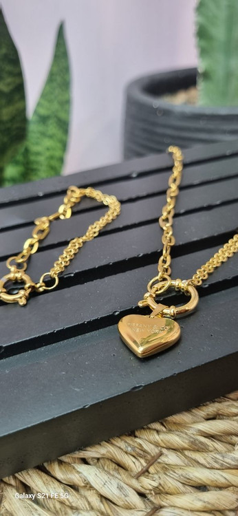ست کامل استیل تیفانی با اویز قلب قفل ملوانی طلایی ترندترین کپی