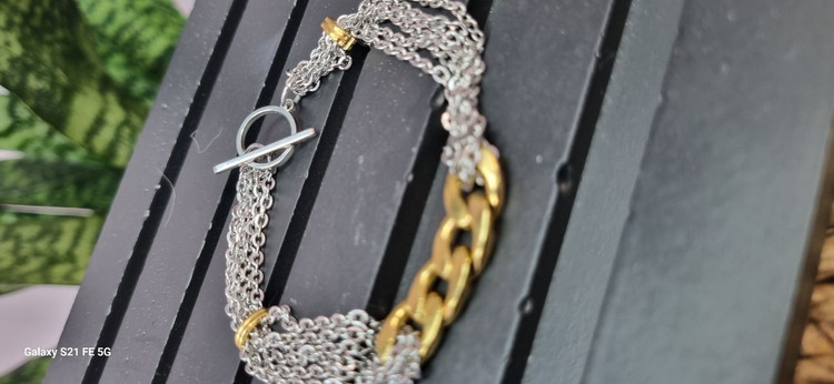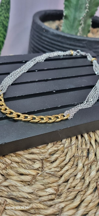 سرویس استیل دستبند و گردنبند دو رنگ کارتیر و دیپلمات
