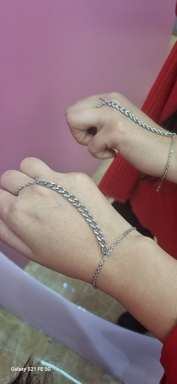 تمیمه دستبند نقره ای استیل رنگ ثابت