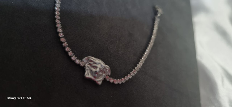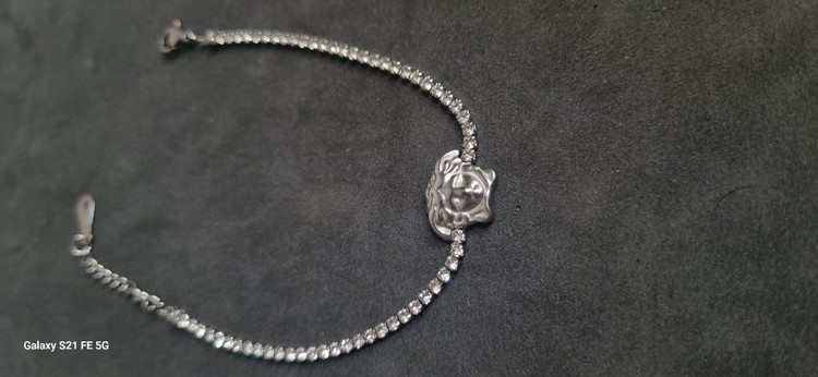 دستبند نقره ای ورساچ تنیسی نگین دار استیل رنگ ثابت