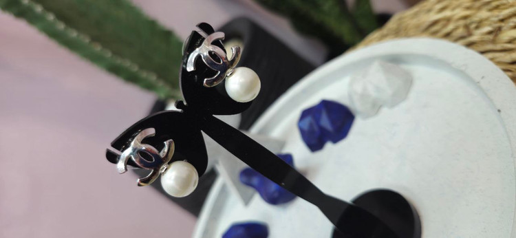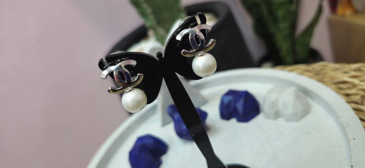 گوشواره استیل نقره ای چنل اویز مروارید