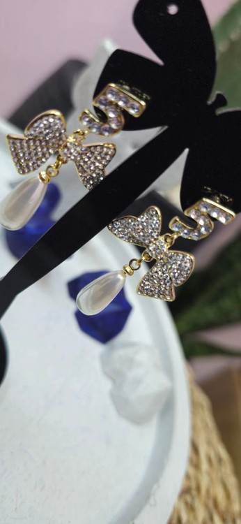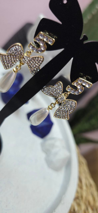 گوشواره استیل طلایی نگین دار اویز مروارید