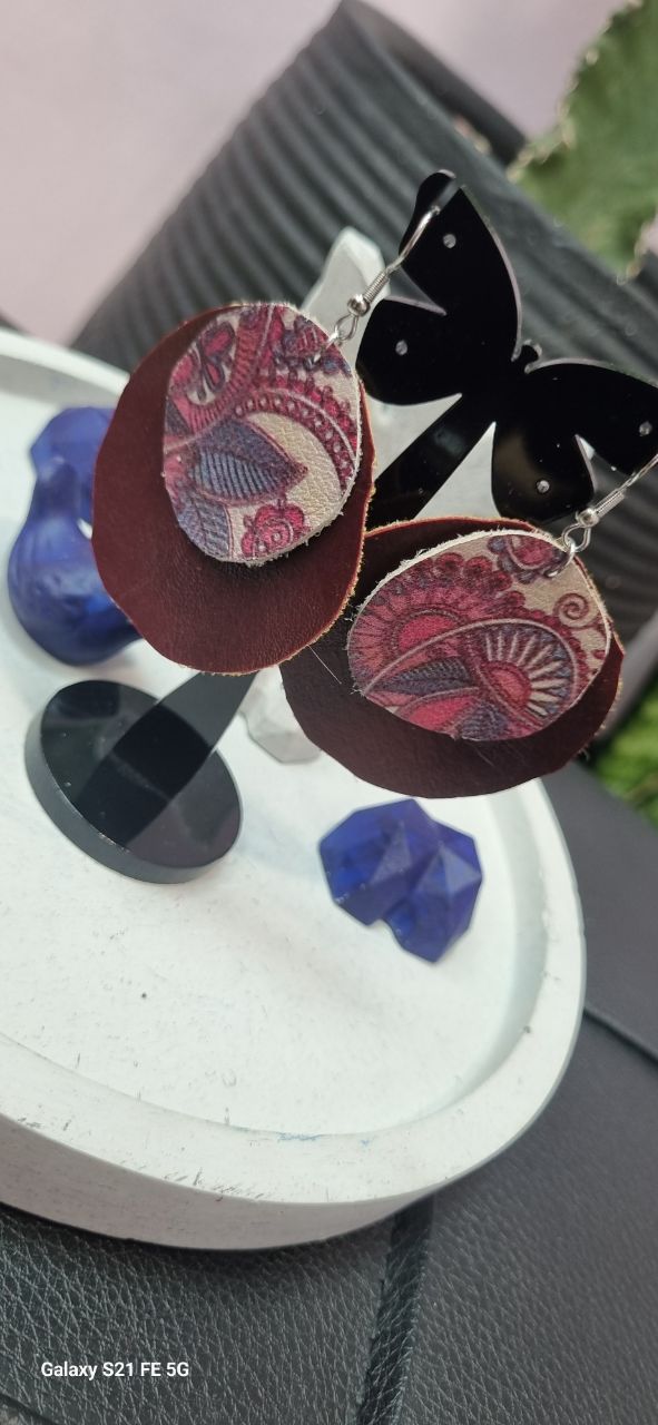 گوشواره عصایی چرم دو رنگ