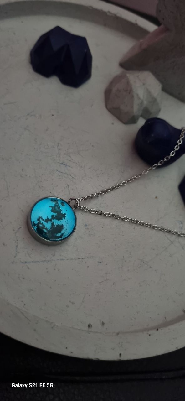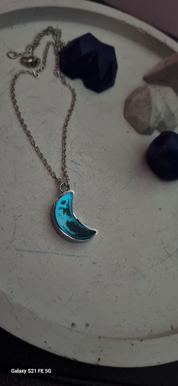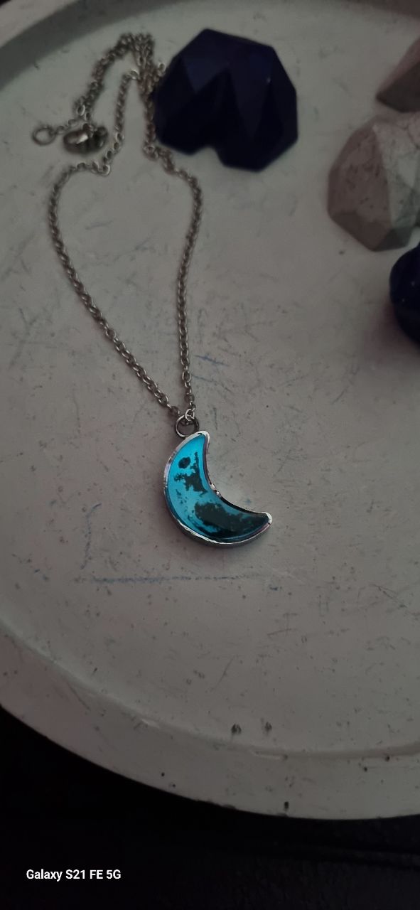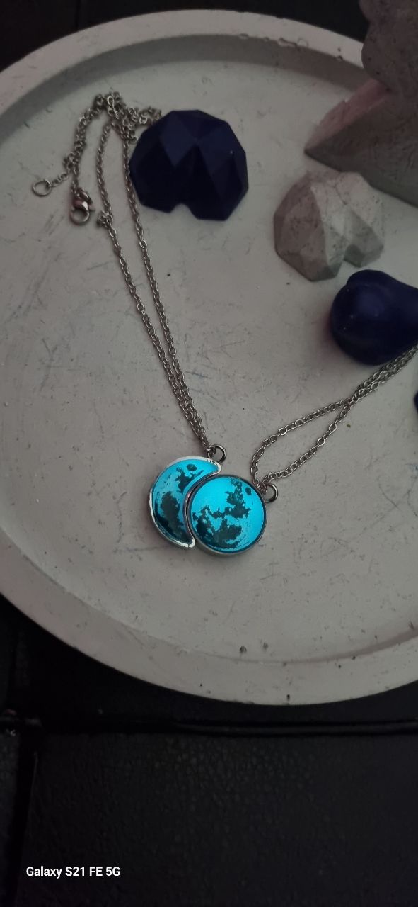 گردنبند ست استیل نقره ای شبتاب ماه و هلال ماه